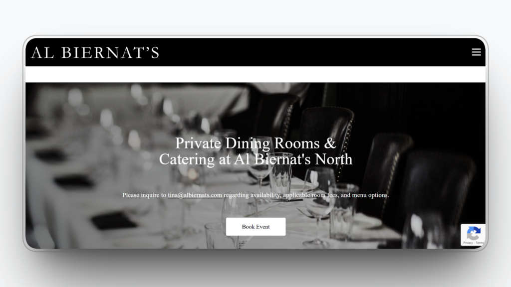 | Al Biernat’s North | Corporate meals and milestone dinners | 70 | Email for availability and room fees | 4.7/5.0 |